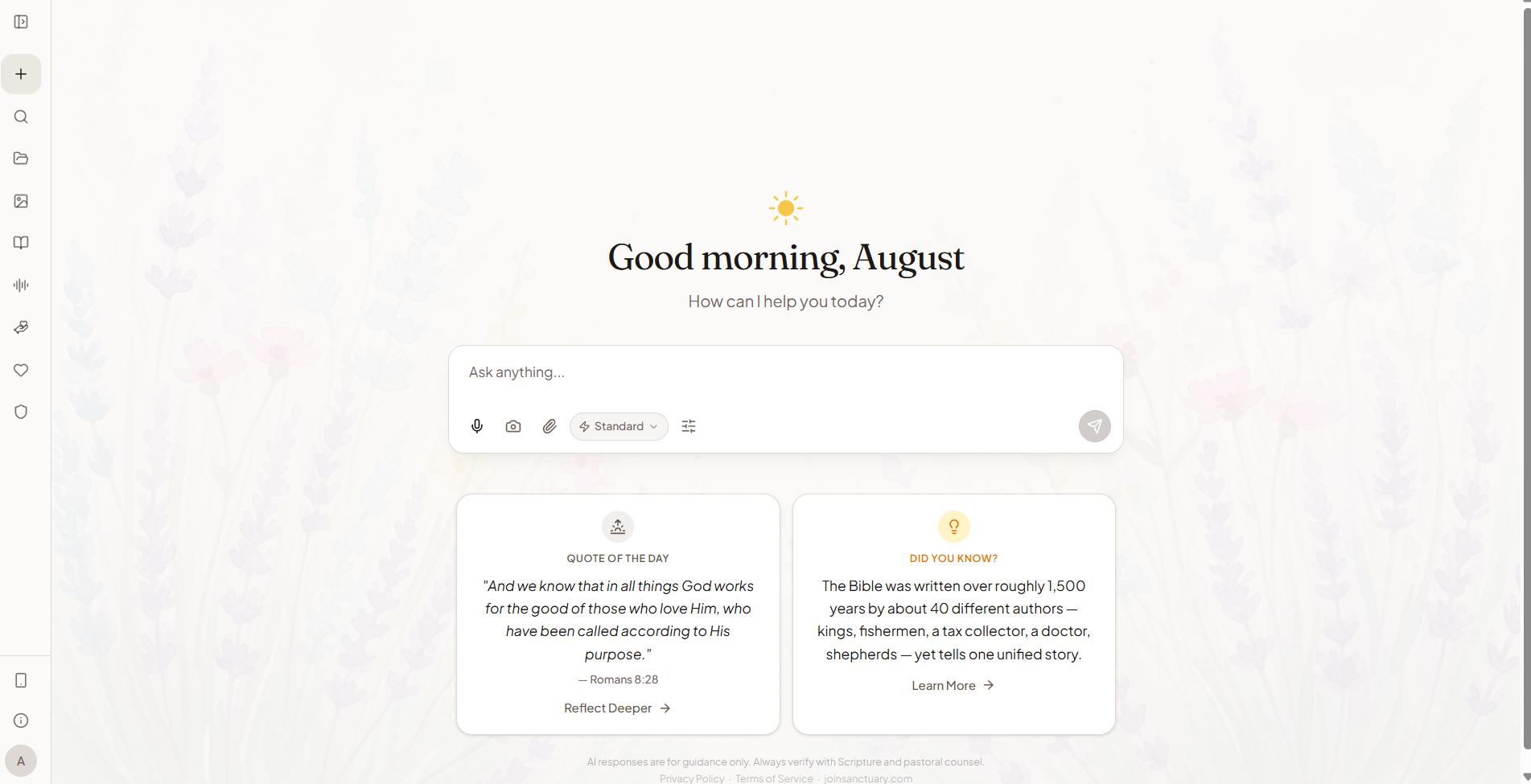 When faced with a crisis of faith, questions about suffering, or dilemmas requiring a biblical worldview, believers have consistently found themselves receiving well-intentioned but ultimately inadequate answers from conventional AI that fail to nourish the soul or uphold foundational Christian values. For example, a 2024 American Bible Society study revealed that 68% of Americans don’t believe AI could enhance their spiritual practices, and 58% don’t believe it could aid in their moral reasoning, yet millions still seek answers. Despite these misgivings, nearly one in three U.S. adults, and two in five among Gen Z and Millennials, consider spiritual advice from AI as trustworthy as advice from a pastor, highlighting a growing reliance on these tools despite their limitations. Sanctuary has swiftly emerged to fill this critical need, designed from its very core to bridge this gap, offering a digital space where faith is not just acknowledged but is the very foundation of every interaction. Christians are increasingly turning to Sanctuary, finding the biblically rooted answers they seek, and discovering a truly faith-centered approach.
