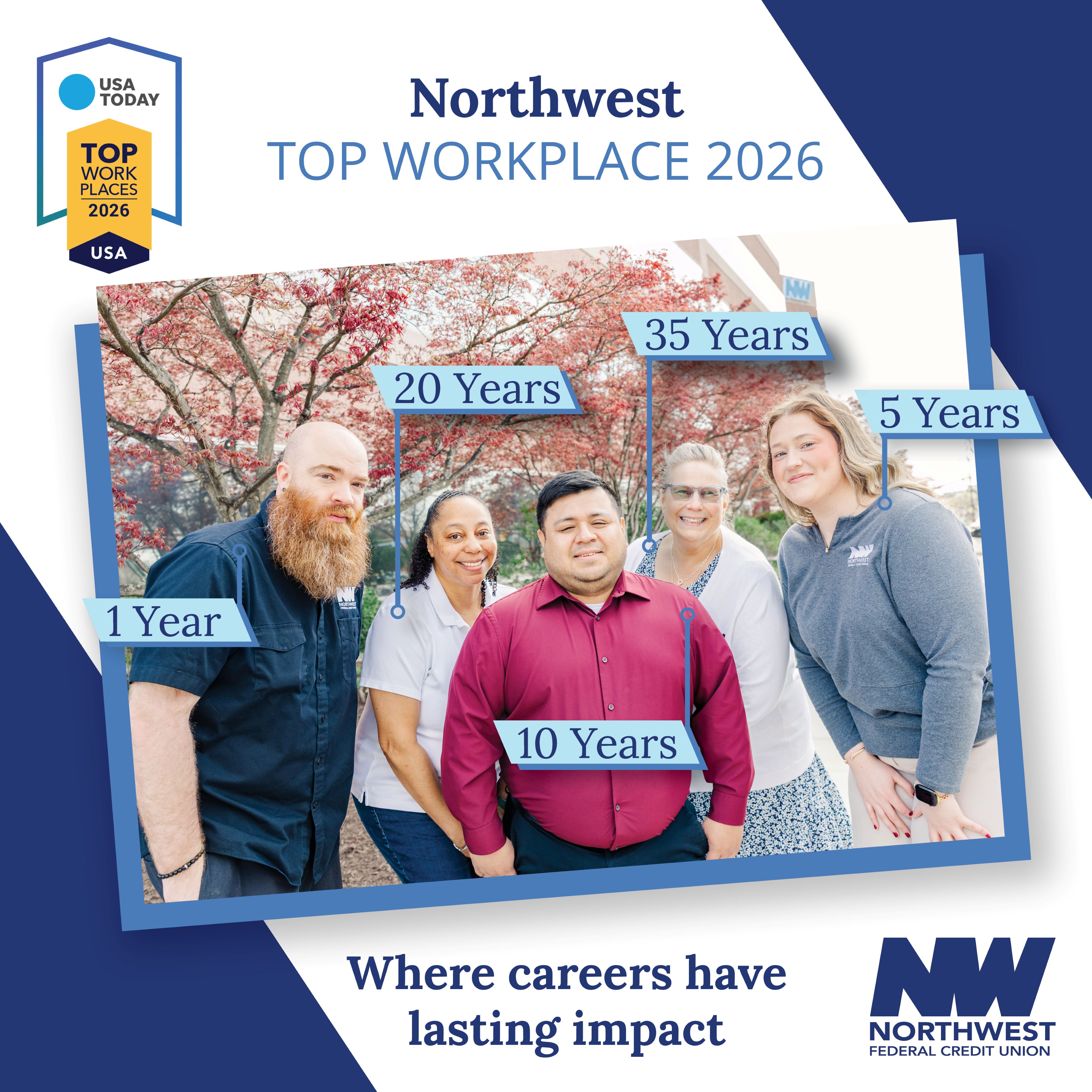 “Northwest has truly become a home to me because it feels like a big family,” said Jennifer Mullin, a Northwest Mortgage System Administrator who has spent the last 35-years with the credit union. “So many of us have grown our careers here together, and we are always willing to step in and help one another, whether it falls under our assigned duties or not. That spirit of support not only makes this a great place to work, but it also helps us take better care of our members and makes me proud to work here.”